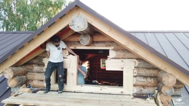 Самый сложный косяк установили!) А ведь сколько было споров,строить или не строить эту светёлку. И не зря,получилось ладно!