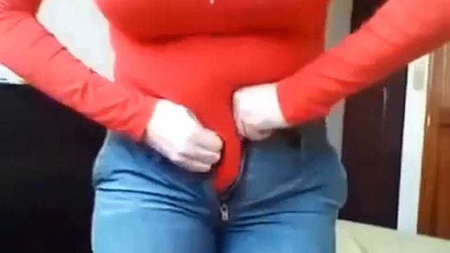 Девушка с животиком не может влезть в маленькие джинс?