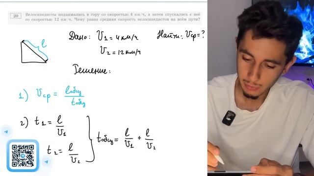 Велосипедисты поднимались в гору со скоростью 4 км_ч, а затем спускались с неё со скоростью - №20504
