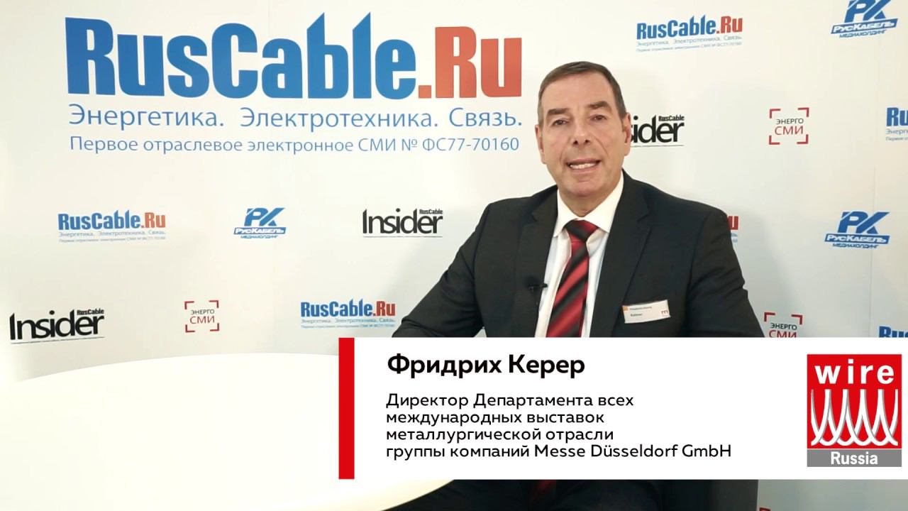 С 18 по 20 июня 2019 года в Москве на территории ЦВК «Экспоцентр» в павильоне Форум прошла Международная выставка оборудования для производства и обработки проволоки, кабеля и метизов в России wire Russia/Проволока Россия 2019. Участники wire Russia 2019 представили последние технологические разработки в области оборудования для производства всех видов проволоки и кабелей. «Проволока Россия» проводится один раз в два года и имеет статус ведущей специализированной выставки в области технологии производства кабельной и проволочной продукции в России. Организаторами выставки выступают Messe Düsseldorf GmbH, ООО «Мессе Дюссельдорф Москва» и Всероссийский научно-исследовательский институт кабельной промышленности (ВНИИКП). Выставка проходит при традиционной поддержке Союза немецких машиностроителей (VDMA) и Международной Трубной Ассоциации (ITA). Господин Фридрих Керер (Hr. Friedrich Kehrer) директор Департамента всех международных выставок металлургической отрасли группы компаний Messe Düsseldorf GmbH (Global Portfolio Director Metals and Flow Technologies) ответил на несколько вопросов об экспонентах wire Russia 2019 специально для RusCable.Ru.
