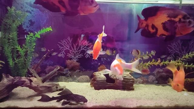 Астронотусы и карпы Коя в одном аквариуме .