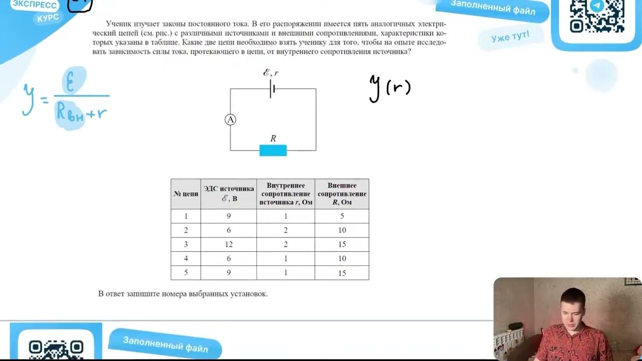 Ученик изучает законы постоянного тока. В его распоряжении имеется пять аналогичных - №34284