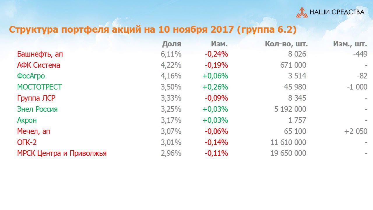 Собственные средства компании #139. Обзор с 27.10.2017 по 10.11.2017