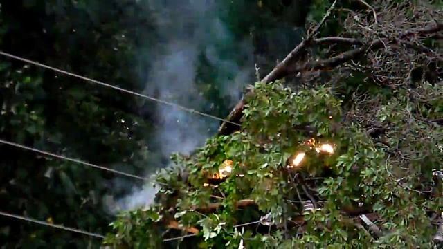 Электрическое замыкание дерева на ЛЭП и дуга
