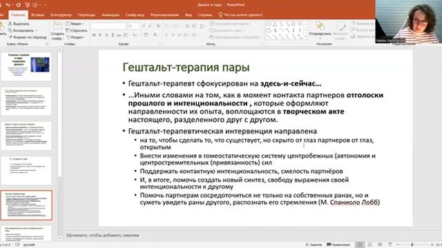 Наталья Староборова. Гештальт - терапия в паре: поддержка диалога