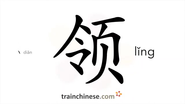 领 (lǐng) to lead; receive; get; collar