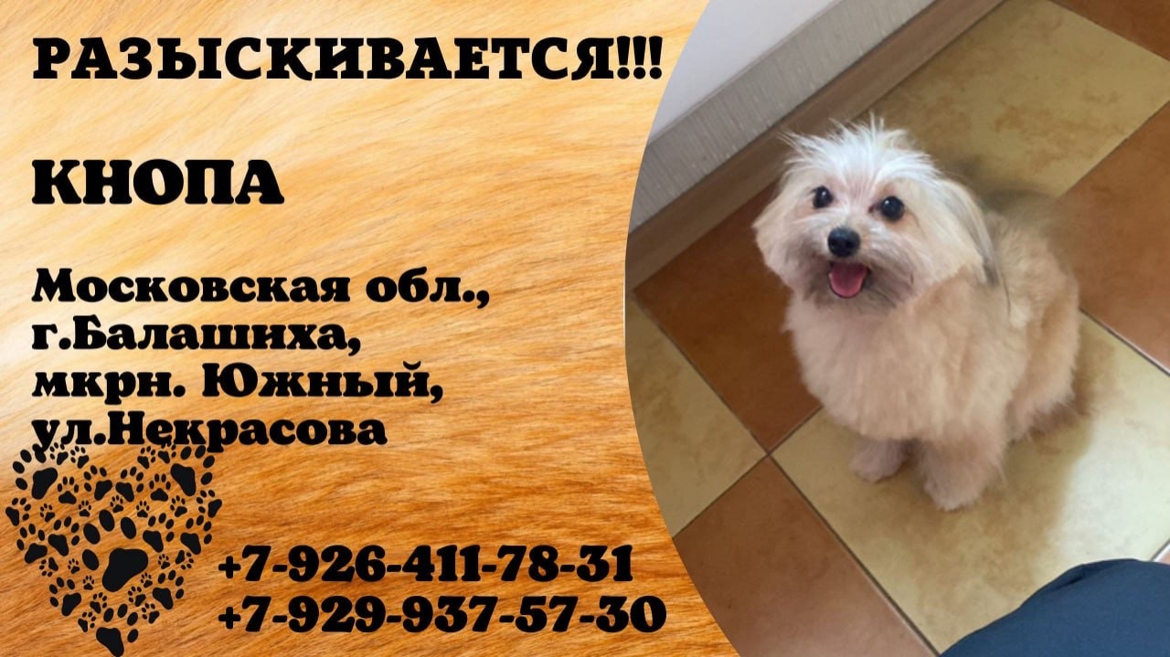 Пропала собака! КНОПА. Московская обл., г.Балашиха.