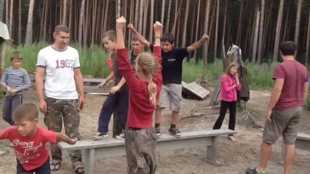 Летние семейные сборы Сибирской заставы, 2016 года. Занятия отцы и дети - Командная игра, за обладание скамьёй. Фрагмент занятий на Сибирской заставе. Июль 2016