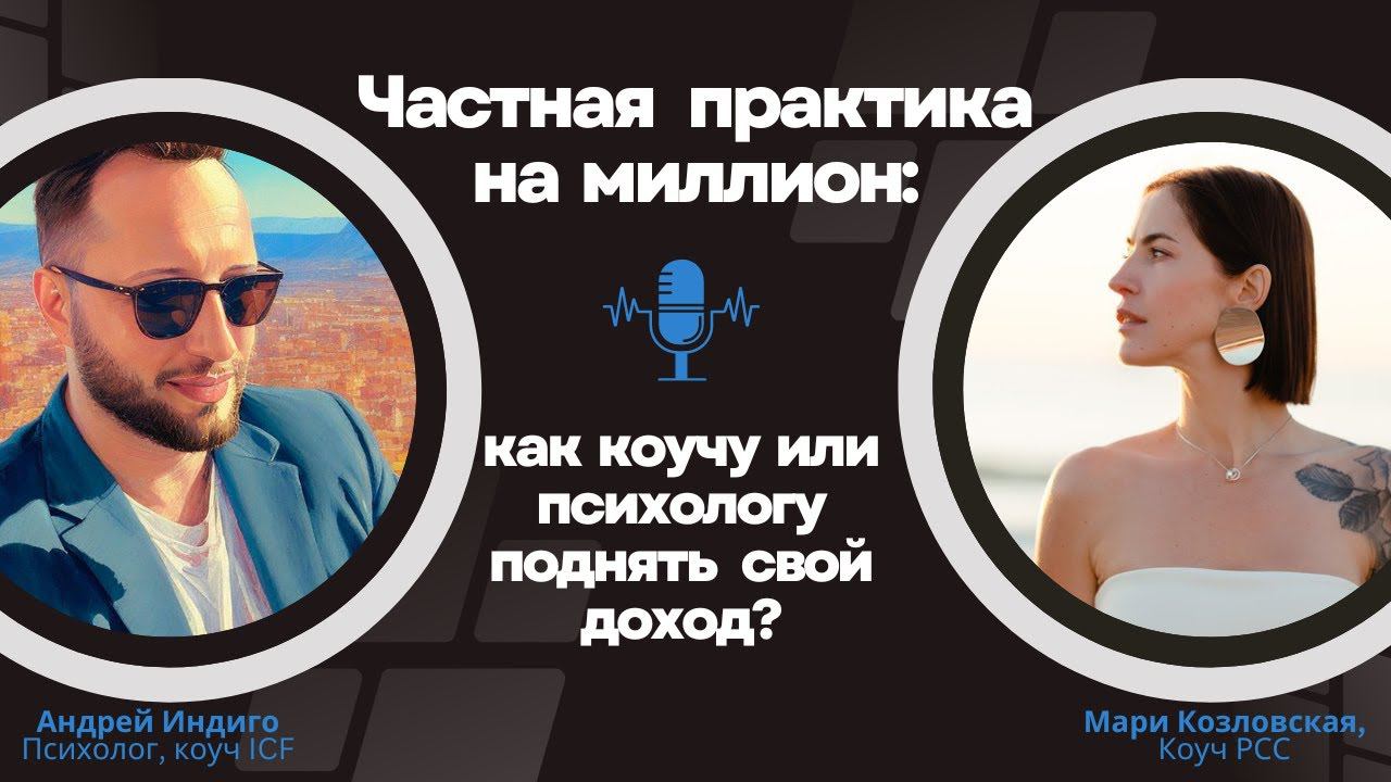 Запись эфира для коллег из помогающих профессий - коучей и психологов - на тему построения своей прибыльной частной практики. Что мы обсудили: ✅ Запуски, конвейер, высокие чеки: какие бывают стратегии роста дохода ✅ Что мешает коучу или психологу расти в деньгах? ✅ Каковы необходимые условия для прибыльной частной практики? ✅ Как повышать средний чек за свои услуги и не бояться остаться без клиентов? Моей соведущей выступила коуч РСС, супервизор Мари Козловская https://t.me/vzletai_so_mnoi/ Записаться на диагностическую сессию: https://andreyindigo.com Подписывайтесь на мои социальные сети: Телеграм: https://t.me/AndreyIndigo INST: https://www.instagram.com/andrey.indigo/ ВК: https://vk.com/andrey.indigo