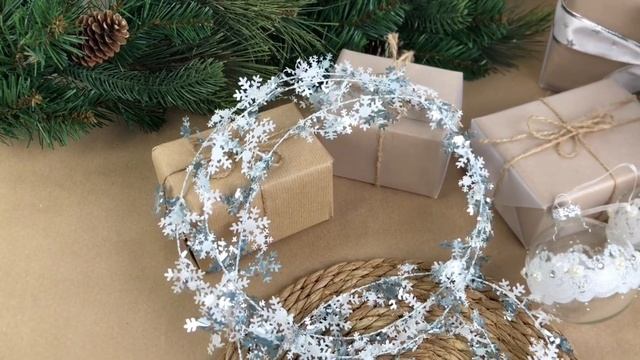 Мишура СНЕЖИНКИ-БЛЁСТКИ на проволочной основе, белый и серый, 270 см, 460160-2
