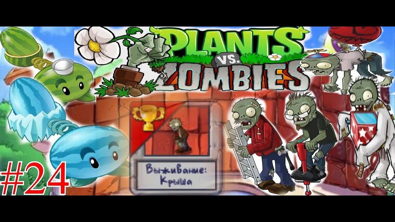 Проходим Выживания Крыша в plants vs zombie 1 [часть 24]
