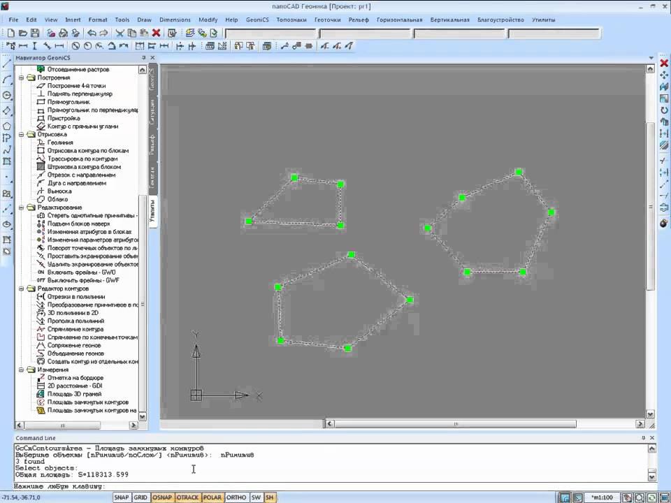 Утилиты nanoCAD Геоника - Площадь замкнутых контуров