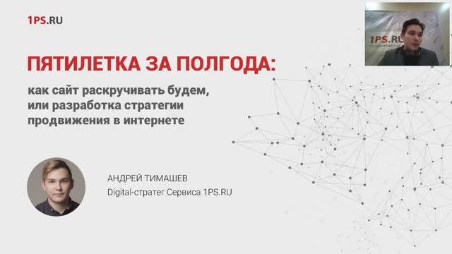Пятилетка за полгода: как сайт раскручивать будем, или разработка стратегии продвижения в интернете. Спикер: Андрей Тимашев, digital-стратег Сервиса 1PS