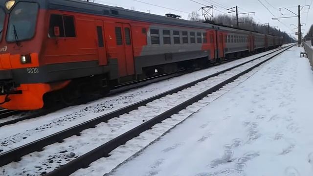 Электропоезд ЭД4МК-0020 сообщением Рязань-1 - Сасово делает остановку на пл. 270 км, Рязанская область, МЖД, 29.01.2021