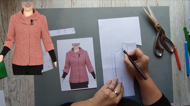 Моделирование. Круглый воротник на стойке на модели полупальто. Выкройка № 1443.