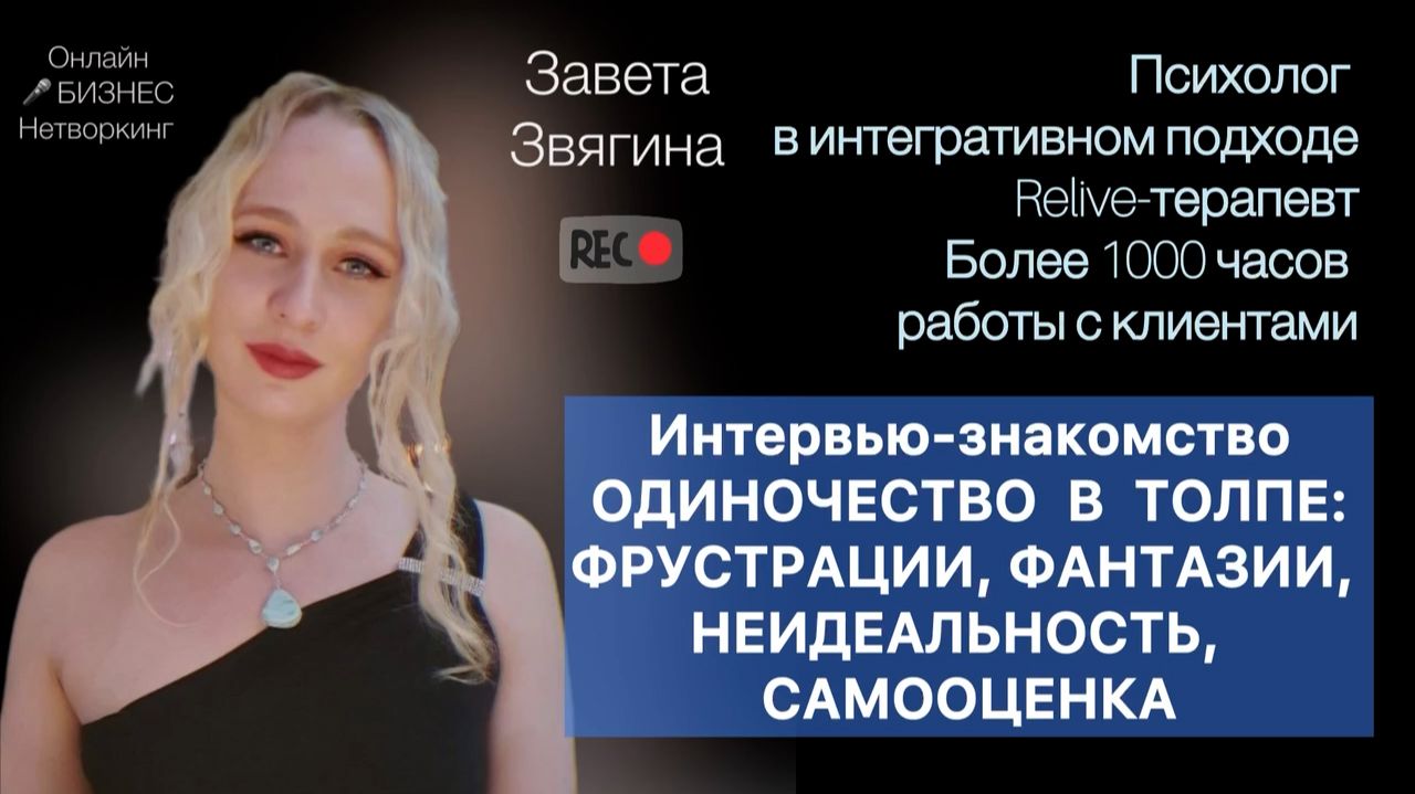 Завета Звягина - психолог в интегративном подходе, Relive-терапевт, более 1000 часов работы с клиентами. Помогает: 💎Раскрыть свой потенциал, решить проблемы с самооценкой, недостатком внутренних опор; 💎Помочь с самореализацией и построением карьеры, одиночеством, трудностями в отношениях; 💎Разрешить обиды на родителей, проработать шоковую травму, панические атаки. 👉🏼 Подключайтесь к каналу Нетворкинга ✈️ Контакты и социальные сети: Telegram https://t.me/zaveta_psy @Zaveta_z 🎤✨ По вопросам участия в качестве спикера в подкастах интервью, а также различных других форматах (индивидуальный эфир, практикум, конференция, нетворкинг) обращайтесь к организатору в Телеграмм https://t.me/Albina_biz https://t.me/biz_networking1 - Telegram https://vkvideo.ru/@online_business_networking ВК Видео https://www.youtube.com/@online_business_networking - YouTube https://dzen.ru/online_business_networking - Яндекс Дзен https://rutube.ru/channel/30460363/ - RuTube #ОнлайнНетворкинг #УчастиеВмарафоне #СпикерНетворкинг #УчастиеВнетворкинге #Психология