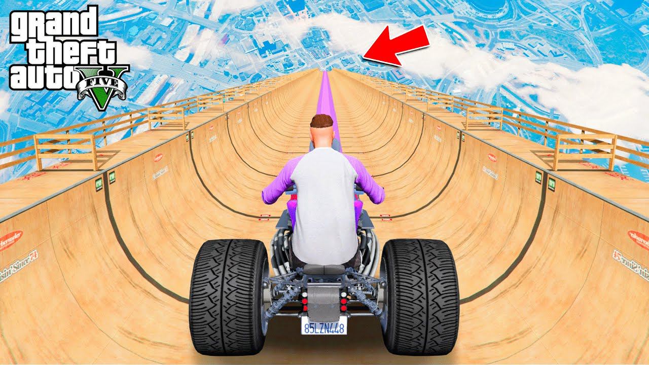 СПУСК БЕЗ ТОРМОЗОВ по МЕГА ТРАМПЛИНУ на САМОМ ДЛИННОМ МОТОЦИКЛЕ в ГТА 5 МОДЫ - ЭКСПЕРИМЕНТЫ в GTA 5