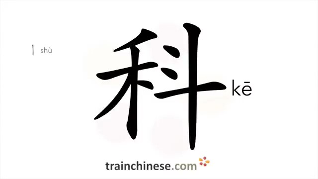 科 (kē) subject of study; family, section