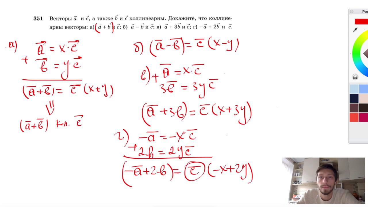 №351. Векторы a и c, а также b и c коллинеарны. Докажите, что коллинеарны векторы: а) a + b и с; б) a - b и c; в) a + 3b и с; г) -a + 2b и с. Мой второй канал для подготовки к ЕГЭ и ОГЭ - https://www.youtube.com/ЕвгенийСумин Инстаграм - https://www.instagram.com/EGE_OGE.math Личный инстаграм - https://www.instagram.com/ee_sumin VK - https://vk.com/evgeniysumin FB - https://www.facebook.com/EvgeniySumin