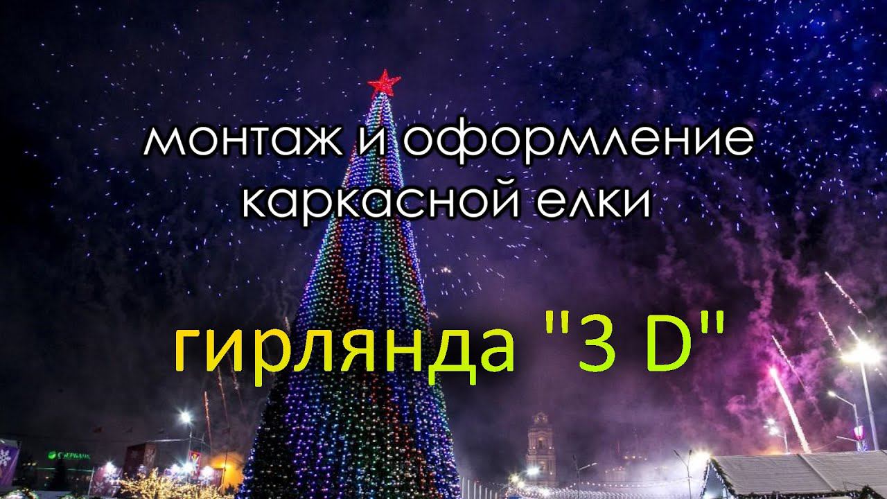 Монтаж уличной гирлянды "3D" на каркасную елку