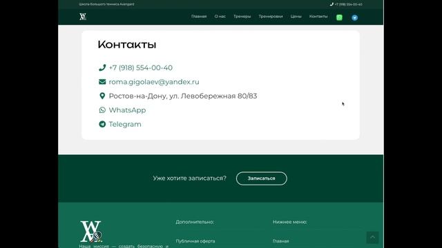 Сайт Детской Школы Тенниса / Портфолио вебмастера (заказать сайт, разработка сайта, купить сайт)
