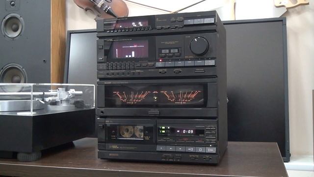 SHARP CD-X80 очень редкий, двухкассетный (Обе кассеты распологаются в одном кармане, разработка фирмы Шарп, крайне сложный лентопротяжный механизм), высококлассный со стрелочными индикаторами, с эквалайзером, с анализатором спектра и др... музыкальный центр. Производитель Япония.