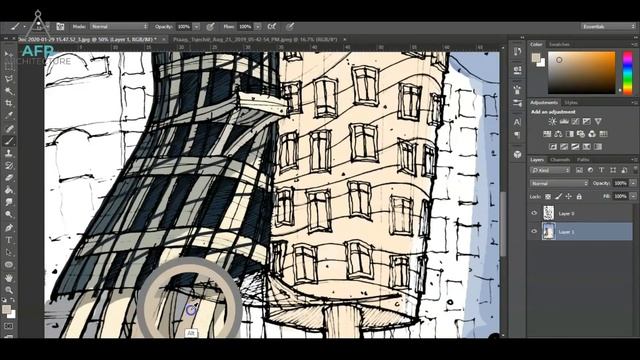 HOW TO COLOUR ARCHITECTURE SKETCHES IN DIGITAL | Photoshop Time Lapse #2