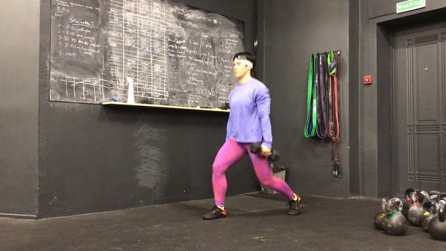 Приседания стоя в ножницах с гантелями в руках