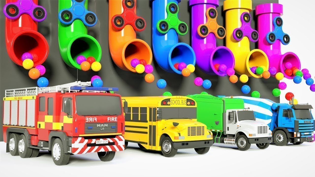 Играем и изучаем в цвета Маленькая акула и автобус с игрушками и горками Мультики про машинки