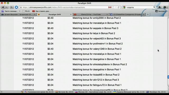 Вывод комиссионных из бэк офиса Global One в ewallet