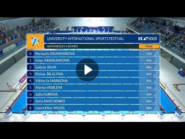 Финальный заплыв с участием Марии Васильевой на Международном фестивале университетского спорта в Екатеринбурге на дистанции 400 м комплексное плавание 5.03,58 2 место #ФПНО