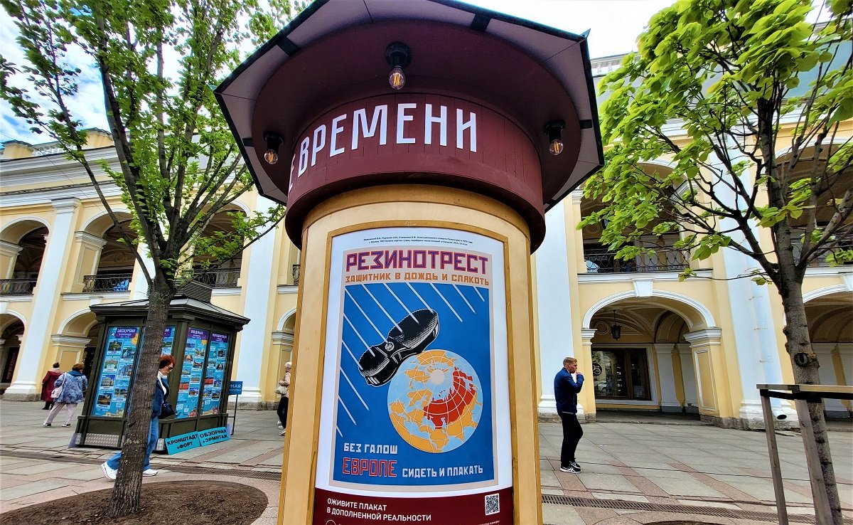 Выставка советских постеров "Вне времени", посвященная 130-летию Владимира Маяковского у Гостиного Двора в Санкт-Петербурге, 2023