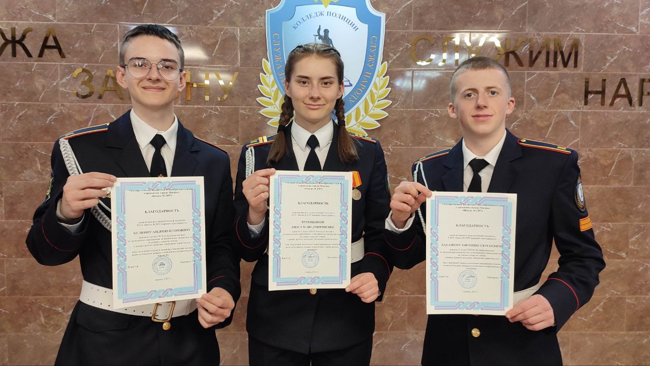 Курсанты 2 курса Е. Бакашов, А. Боголюб, А. Булкин, Д. Проничкина, А. Трубицына, В. Чапарян и С. Шивцова провели занятия по безопасности дорожного движения с учениками начальной школы №1286. Занятия прошли в рамках проекта "Дорожная грамотность". За проведенные уроки курсанты были отмечены благодарственными письмами директора школы. В мероприятии приняли участие более 200 детей! Наставник курсантов - А.В. Кулачкова, преподаватель. Куратор направления О.А. Манжукова, преподаватель.