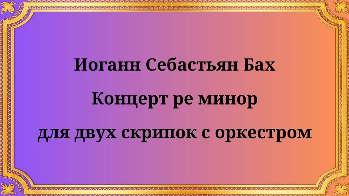 Иоганн Себастьян Бах Концерт ре минор для двух скрипок с оркестром