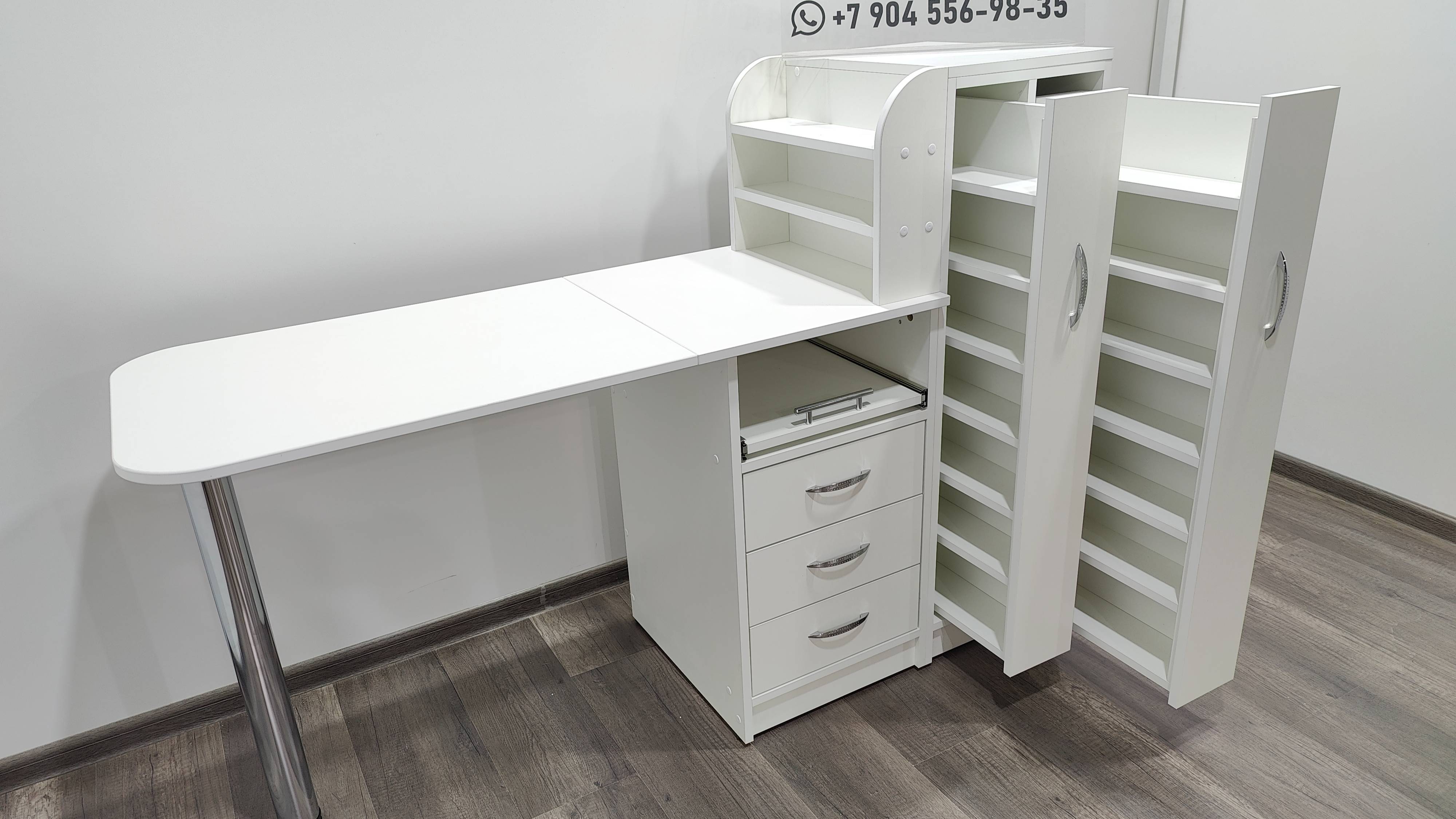Создаем профессиональные маникюрные столы с розетками. Изготавливаем столы для маникюра по Вашим размерам и пожеланиям. ❗️ Изготавливаем мебель по соц. контрактам Можно внести изменения по Вашем пожеланиям: ✔Изменить размеры ✔Изменить цвет/декор ✔Изменить цвет и форму ручек ✔Поменять наполнение (ящики, полочки, дверцы, замочки и др.) ✔Сделать отверстия для проводов ✔Установить дополнительные розетки, изменить положение розеток ✔Установить встраиваемую вытяжку ✔Установить колеса со стопором ✔Изготовить каретную стяжкой ✔И многое другое по Вашим пожеланиям При внесении изменений окончательную стоимость изделия уточняйте у менеджера. Материал изделия ЛДСП EGGER или Lamarty Фурнитура - Boyard , GTV Меридиан. Получение заказа: ✔ Есть самовывоз и доставка. ✔ Отправляем заказы транспортными компаниями в другие города. Стоимость доставки Вам рассчитает менеджер. Остались вопросы? Напишите нам в WhatsApp +7(904)556-98-35 Мы подскажем всю информацию.