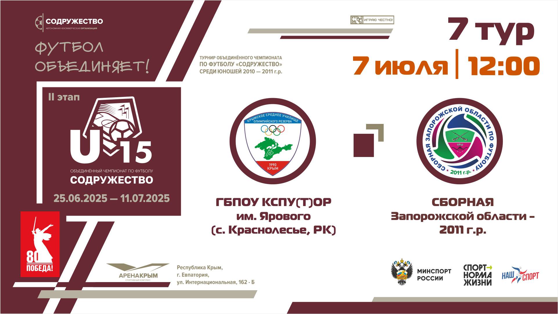 7 ТУР | U-15 | УОР (U-15) (г. Симферополь, РК) - Сборная Запорожской области 2011 г.р.