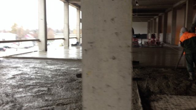 Бетонная стяжка промышленного пола с топпингом в складе.