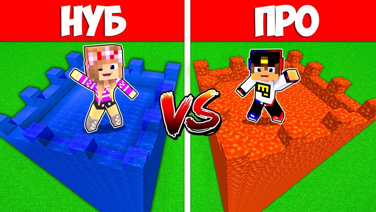 ЗАЩИЩЕННЫЙ НЕБОСКРЁБ НУБА ИЗ ЛАВЫ против НЕБОСКРЁБ ПРО ИЗ ВОДЫ в МАЙНКРАФТ ВИДЕО ТРОЛЛИНГ MINECRAFT