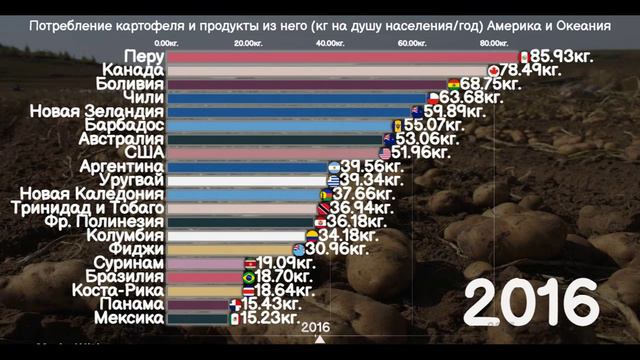 Потребление картофеля и продукты из него (кг на душу населения/год) 2010-2021. (Америка и Океания).