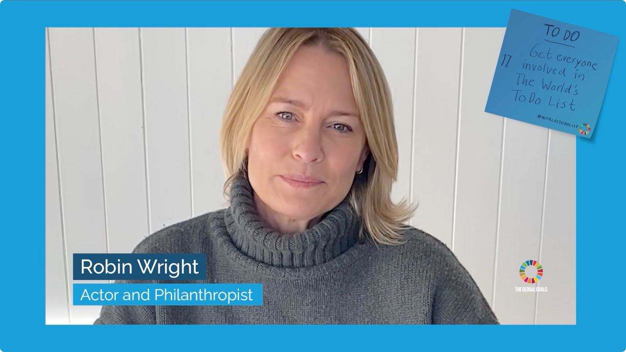 Actress, director, and philanthropist Robin Wright is committed to Sustainable Development Goal 17—Partnerships for the Goals. No one person on their own can save our planet— but together we can make lasting change. Share YOUR to-do list for a brighter tomorrow during Global Goals Week at Expo 2020 Dubai. Follow us on: ----------------------- Facebook | https://www.facebook.com/Expo2020Dubai/ Instagram | https://www.instagram.com/expo2020dubai/ Twitter | https://twitter.com/expo2020dubai LinkedIn | https://www.linkedin.com/company/expo-2020-dubai/ Bringing you The World’s Greatest Showcase of Human Brilliance & Achievement. Visit: http://www.expo2020dubai.com/ and be part of an unforgettable experience. #Expo2020 #Dubai #ExpoGlobalGoals