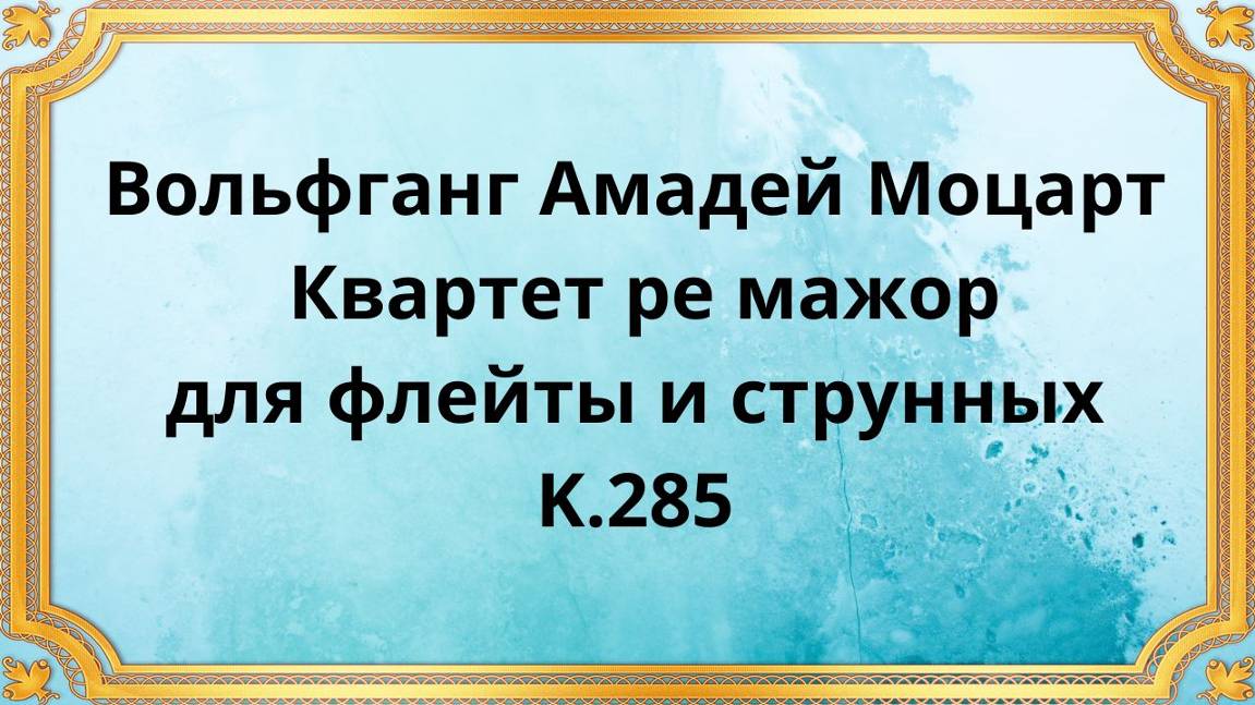 Вольфганг Амадей Моцарт Квартет ре мажор для флейты и струнных, K.285