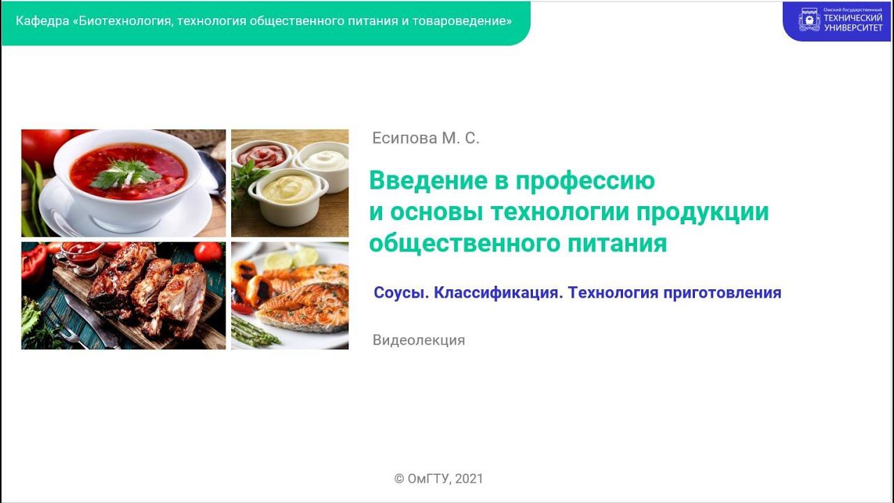 Онлайн-курс по дисциплине «Введение в профессию и основы технологии продукции общественного питания»: http://course.omgtu.ru/otpop Автор: Есипова Мария Сергеевна, старший преподаватель кафедры «Биотехнология, технология общественного питания и товароведение» ОмГТУ. В этом видео вы узнаете, какие соусы применяются в кулинарии, как их приготовить, к каким блюдам подавать и в течение какого времени можно хранить.
