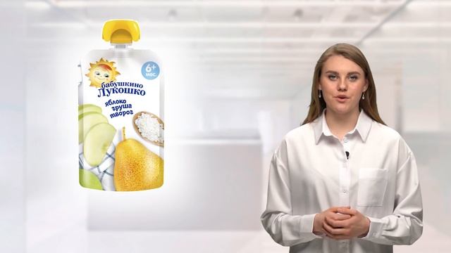 https://baby-food.kz/product/pyure-babushkino-lukoshko-yabloko-grusha-tvorog-s-6-mesyatsev-90g/?utm_source=YT Сочетание творога и фруктовых кислот улучшает усвояемость кальция и других полезных веществ. Описание Пюре фруктовое с творогом гомогенизированное стерилизованное для питания детей раннего возраста. Яблоко — источник фруктовых кислот, витамина С, железа, пектинов. Сочетание железа и витамина С способствует наилучшему всасыванию железа в кишечнике, что является профилактикой анемии. Пектины и фруктовые кислоты мягко стимулируют деятельность желудочно-кишечного тракта. В груше содержится огромное количество полезных веществ — каротин, фолиевая кислота, железо, марганец, йод, медь, калий, магний, натрий, фосфор, цинк, фтор, молибден, пектины и органические кислоты, витамины А, вся группа витаминов В, С, Е, РР. Груша полезна для зрения, нервной системы, формирования костно-мышечной системы. Творог богат кальцием, белком, фосфором, микроэлементами, которые участвуют в формировании костной ткани и зубов. Продукты с творогом особенно полезны для детей с рахитом и низкой массой тела. Вкусное и полезное пюре в мягкой упаковке удобно взять с собой в дорогу, на прогулку, в гости. Состав: пюре из яблок и груш, творог, мука рисовая. Без сахара. Без ГМО. Рекомендации по употреблению. Продукт готов к употреблению. ВАЖНО: не разогревать упаковку в микроволновой печи. Не оставляйте детей без присмотра во время использования продукта! Соблюдайте осторожность, так как попадание колпачка в рот ребенка опасно и может привести к затруднению дыхания! Срок хранения. 12 месяцев с даты изготовления. Закрытый пакет хранится при температуре от +2°С до +25°С и относительной влажности воздуха не более 75%. Открытый пакет может храниться в холодильнике не более 24 часов. Характеристики: Страна производства Россия Бренд Бабушкино Лукошко Возраст с 6 месяцев Пюре в пауче, микс с творогом Тип многокомпонентные Упаковка пауч Компоненты фруктовое Фрукты и ягоды яблоко, груша Добавки творог С кусочками нет Вес 90г