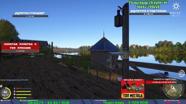 Поддержка донатом https://www.donationalerts.com/r/kalyamba11 Альтернативный донат https://new.donatepay.ru/@1032463 ТОП МЕСЯЦА ПОЛУЧАЕТ ЛЮБУЮ ВЕНГУ ИЗ МАГАЗИНА Если стрим лагает,смотри стрим на трово https://trovo.live/s/Kalyamba_na_Ribalke Мой ВК - https://vk.com/kalyantv НИК в игре kalyan11 НАШ ДИСКОРД СЕРВЕР https://discord.gg/mSbnTJK8TB Заказ водоема на 1 час - 500р ( весь стрим 2500р ) Модерка на канале 1200р ( каждая следующая на 100р больше) Озвучка доната на 40р,50р,100р,200р,300р,500р,1000р ✅Призы в рулетке "ЗОЛОТАЯ" ✔ ЗОЛОТО ✔ ПРЕМ ✔ КАТУШКИ РАПТОР 40, АЗИМУТ 10000, СИЛЬВЕР 80, ТАЙГА с 30 ✔ ПАЛКИ ПИЛКЕРНАЯ, ДОНКА МОРСКИЕ, ✔ РОД ПОД, СТУЛЬЯ ✅Призы в рулетке СТАНДАРТ : ✔ катушка "РАПТОР 40" ✔ катушка "АЗИМУТ 10000" ✔ катушка "ТАЙГА С30, С40," ✔ катушки 60 для медного ( ЭВИИ, НАТОРЫ, ГОЛДА, и тд) ✔ ПИЛКЕРНОЕ УДИЛИЩЕ КОРОЛЕВА ОКЕАНА ✔ Морское Донное удилище ✔ прем ( 3, 7, 30 дней) ✔ золото ( 1, 3, 5, 10, 20 ,50) ✔ билет на море ( 1, 3, 5 дней) ✔ голд наживка и др. ✅Призы в рулетке "СТАРТОВАЯ" ✔ катушка "silver80" ✔ катушка "БЕЛЫЙ КАЛИБР" ✔ катушка "Черный калибр" ✔ катушка "Протон" ✔ катушка "Нарга 6000" ✔ Набор Фидерист и спинингист ✔ Карповик Фортуна ✔ фидерные удилища ✔ прем, золото, алкашка, наживки и тд P.s Рулетка это не казино, а награда за поддержку стримера. Вечный ТОП ПОДДЕРЖКИ (11.05.2024) 1. Dimon_pokemonchik 119 784 2. Interceptor 75 508 3. Skreb79 71 261 4. une personne 68 619 5. Нарвал77 31 550