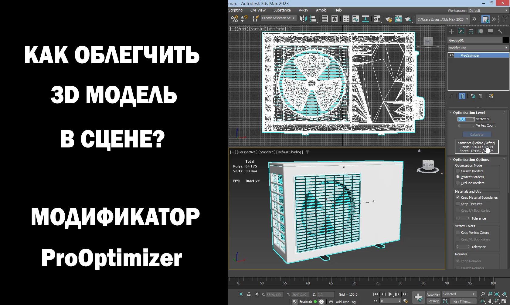 Как облегчить 3D модель в сцене? Модификатор ProOPtimizer.