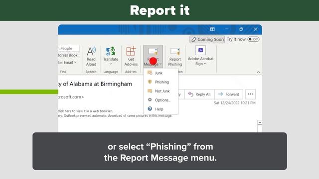 Report phish in Outlook tutorial