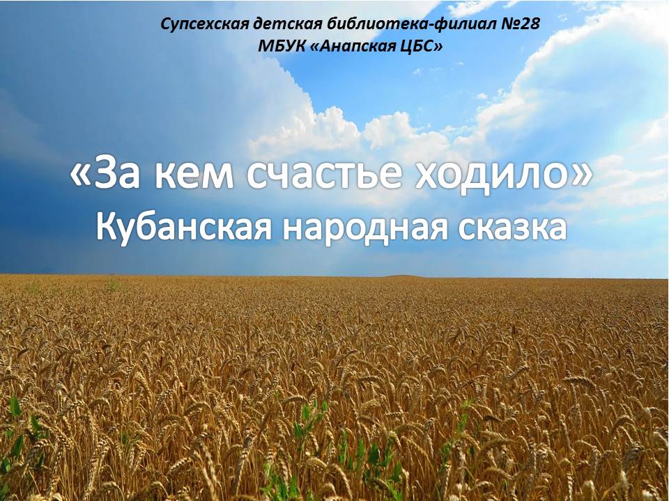 Супсехская детская библиотека-филиал №28 в рамках Всероссийской культурной акции «Ночь искусств – 2022» представляет кубанскую сказку «За кем счастье ходило». Подготовлено библиотекарем Супсехской сельской детской библиотеки-филиала №28 Е.Е. Константиновой