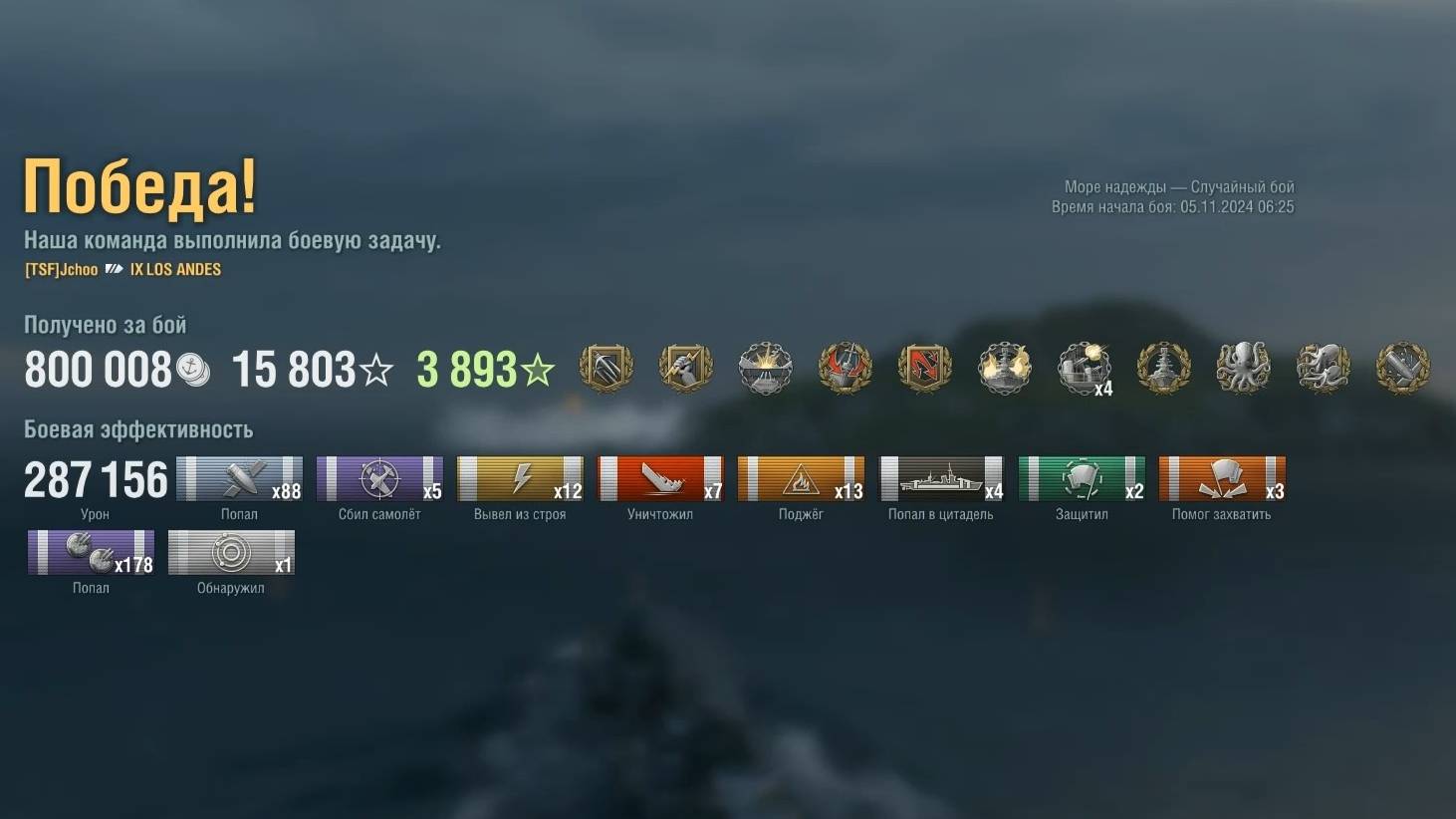 Линкор Los Andes: +287к урона 7 фрагов на карте Море надежды - World of Warships