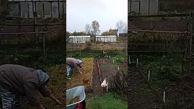 Под чеснок внесло много золы, удобрения. сажаем так; между рядами 10 см а между зубцами 5 см .