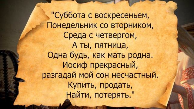 Дорогие мои зрители, в этом видео я расскажу, как загадать сон, чтобы получить правдивый ответ на любой вопрос.. Всем приятного просмотра, и хорошего дня. Ссылка на это видео : https://clck.ru/YZfGC Заговор на вещий сон: "Суббота с воскресеньем, Понедельник со вторником, Среда с четвергом, А ты, пятница, Одна будь, как мать родна. Иосиф прекрасный, Скажи сон несчастный: Купить продать? Найти потерять? #заговорнавещийсон #получитьответвосне #загадатьсон #спроситьответвосне #золотойдракон ===================================================== Подпишись - https://www.youtube.com/channel/UCjz5... ★Жми на палец вверх!) ★Жми на колокольчик) ★Оставляй своё мнение в комментариях